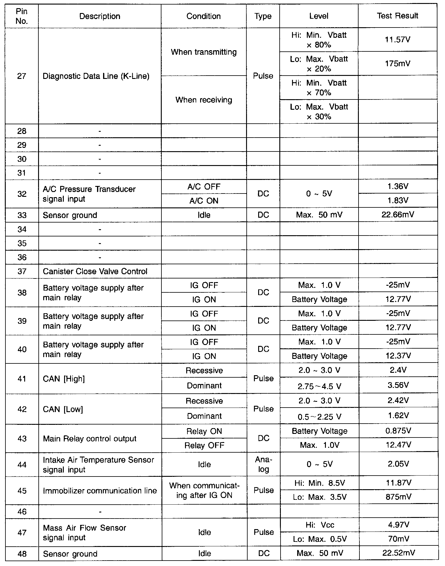 Home >> Hyundai >> 2007 >> Santa Fe AWD V6-2.7L >> Repair and Diagnosis >> Relays and Modules >> Relays and Modules - Powertrain Management >> Relays and Modules - Computers and Control Systems >> Engine Control Module >> Diagrams >> Connector Views