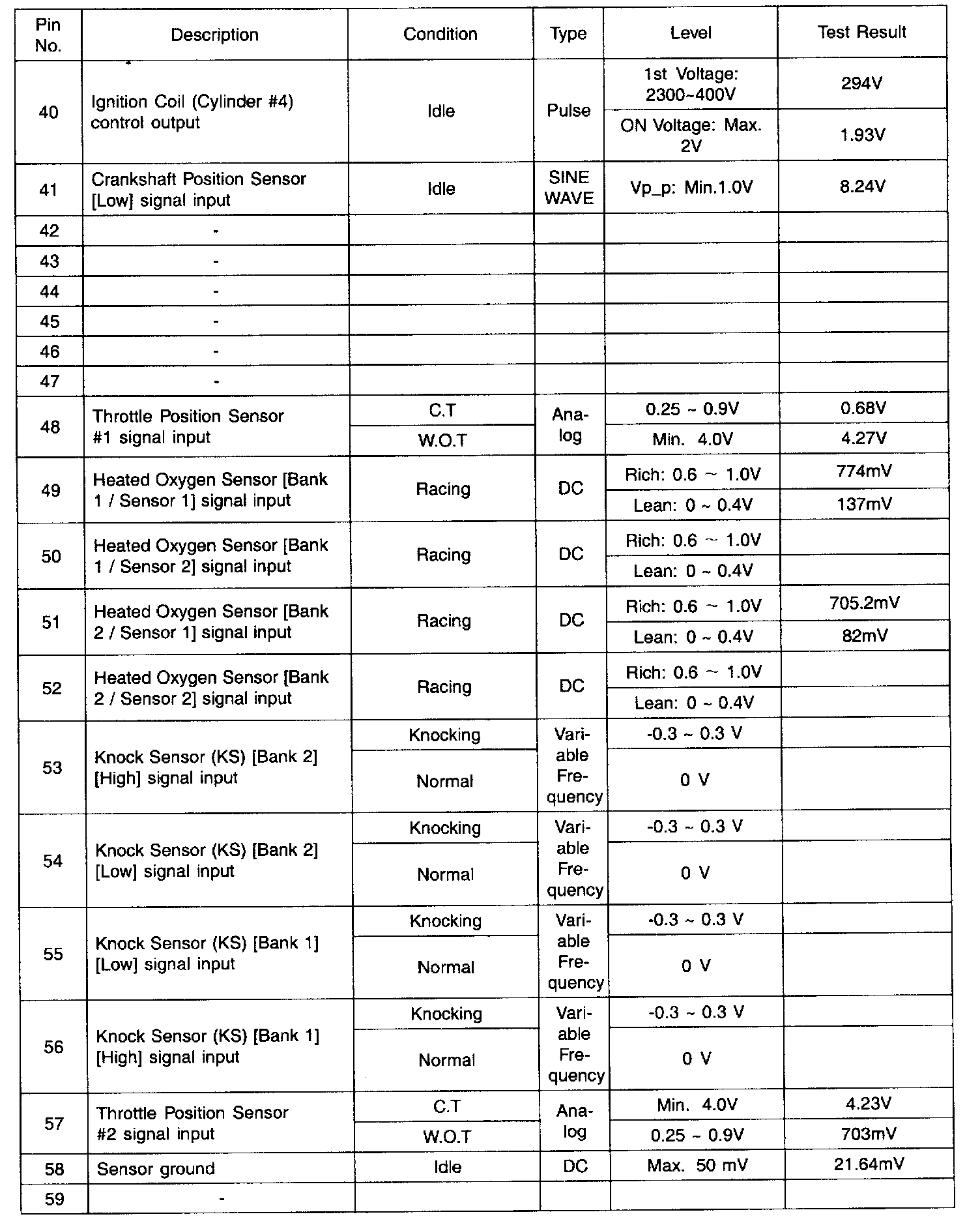 PCM Terminal Input/Output Signal - Connector (C30-A) Part 2:
