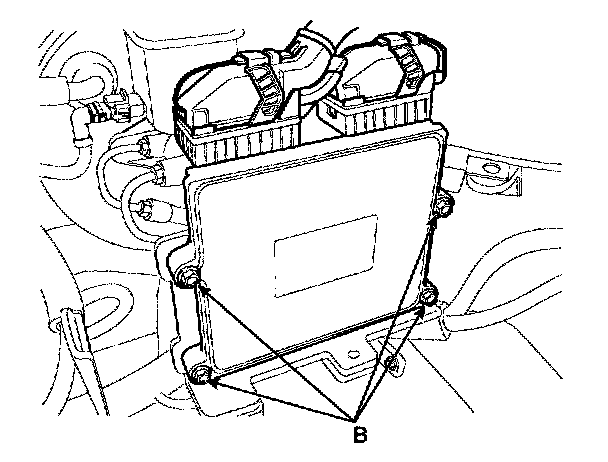 4. Unscrew the PCM mounting bolts (B) and remove PCM from the air cleaner assembly.