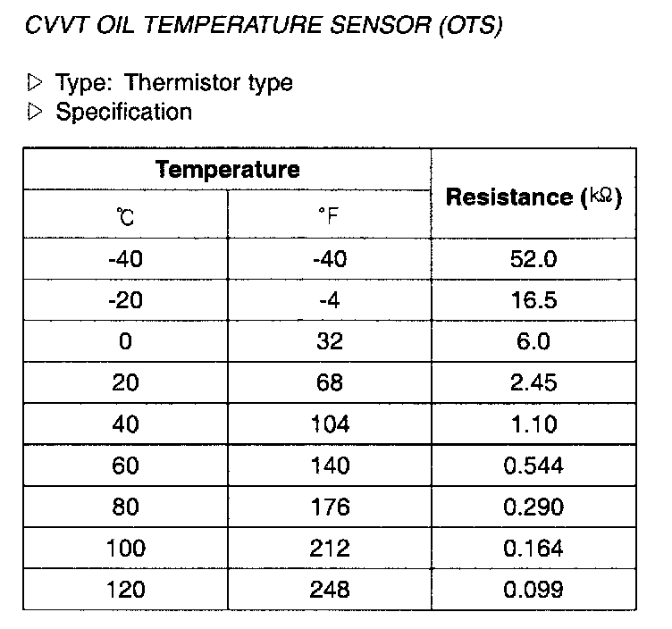 CVVT Oil Temperature Sensor (OTS) - Specification: