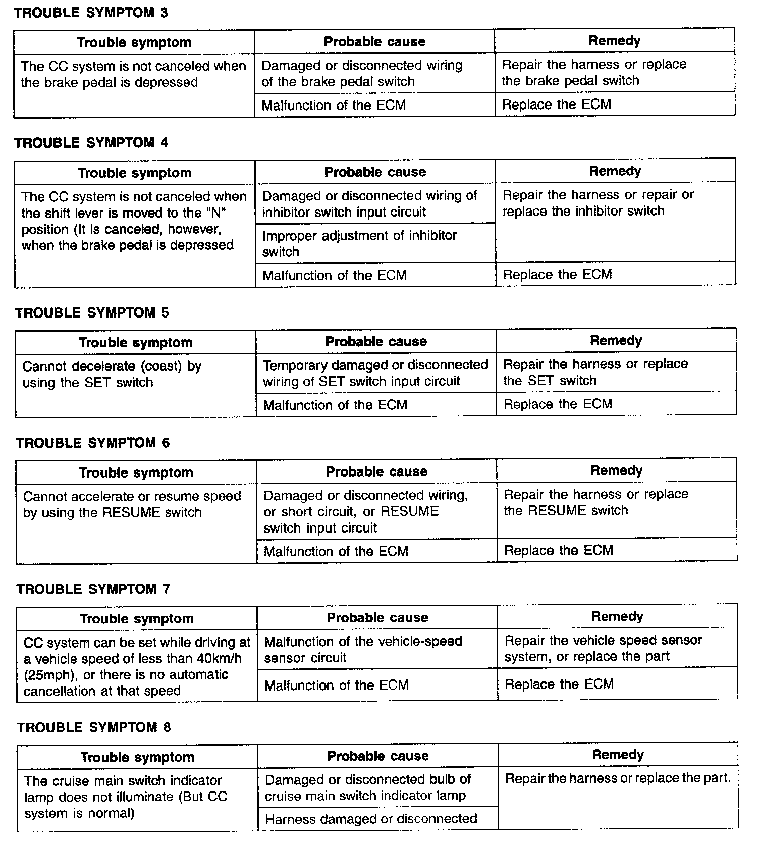 Trouble Symptom Charts (Part 1):