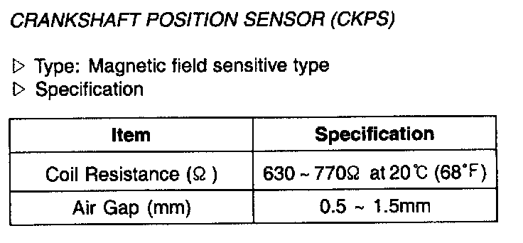Crankshaft Position Sensor (CKPS) - Specification:
