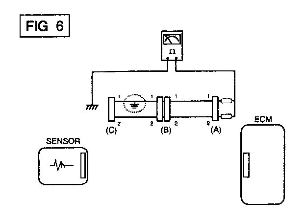a. Disconnect connectors (A), (C) and measure for resistance between connector (A) and Chassis Ground as shown in [FIG. 6].