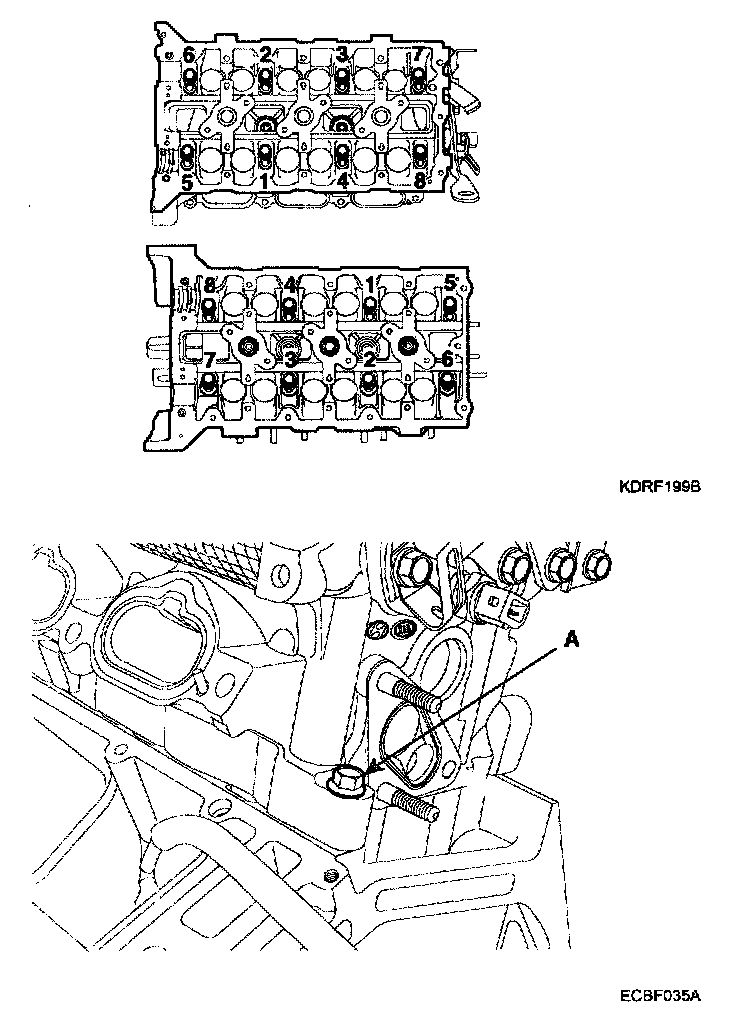 Cylinder head bolt 39.2 Nm (4.0 kgf.m, 28.93 lb-ft) + 120 degrees + 90 degrees(A) 18.62-23.52 Nm (1.9-2.4 kgf.m, 13.74-17.36 lb-ft)