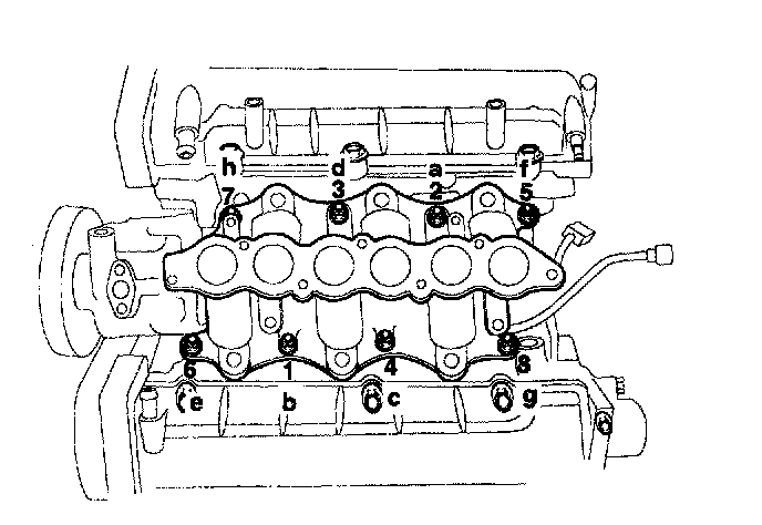 Intake manifold bolt(M8) 18.62-23.52 Nm (1.9-2.4 kgf.m, 13.74-17.36 ft. lbs.)