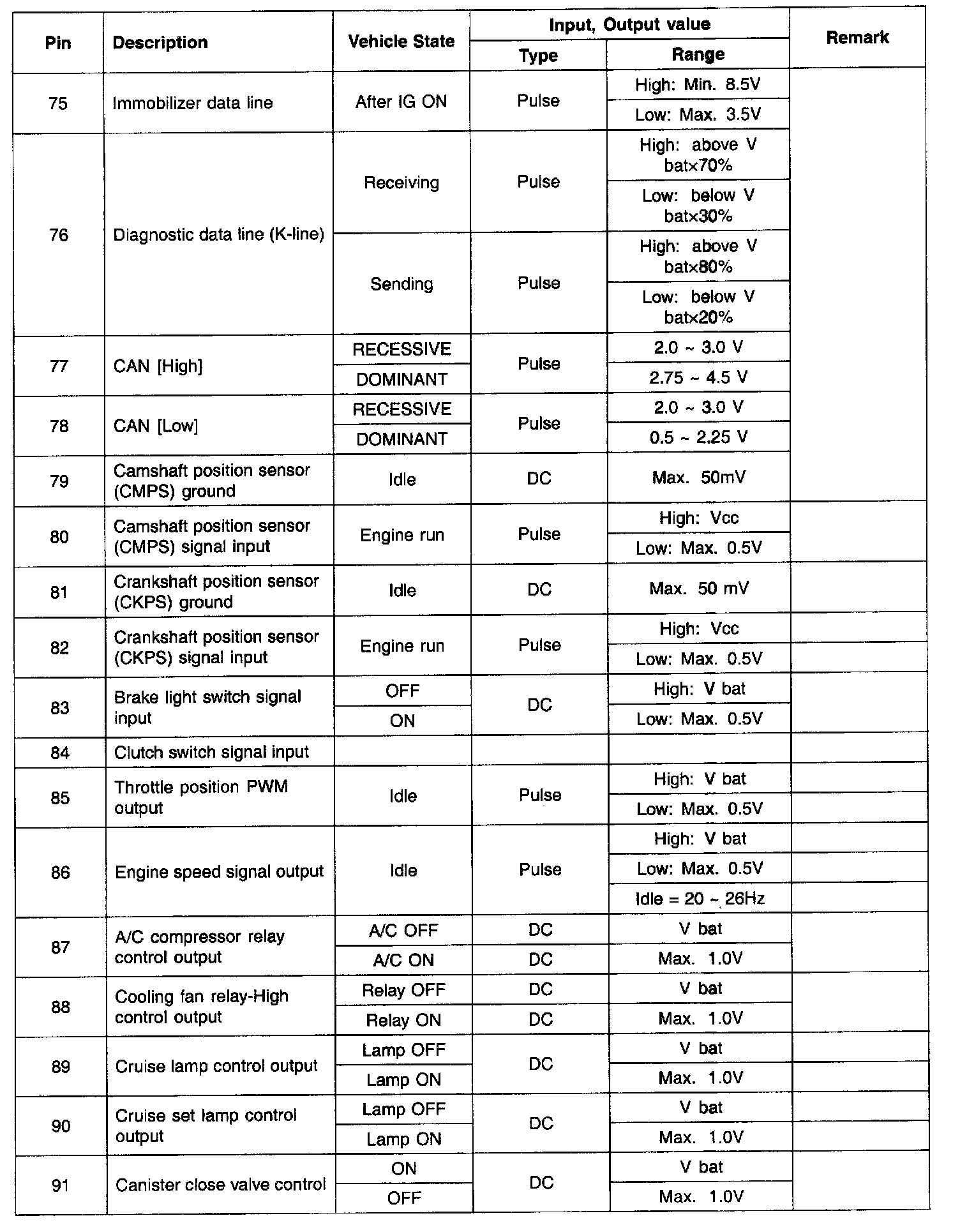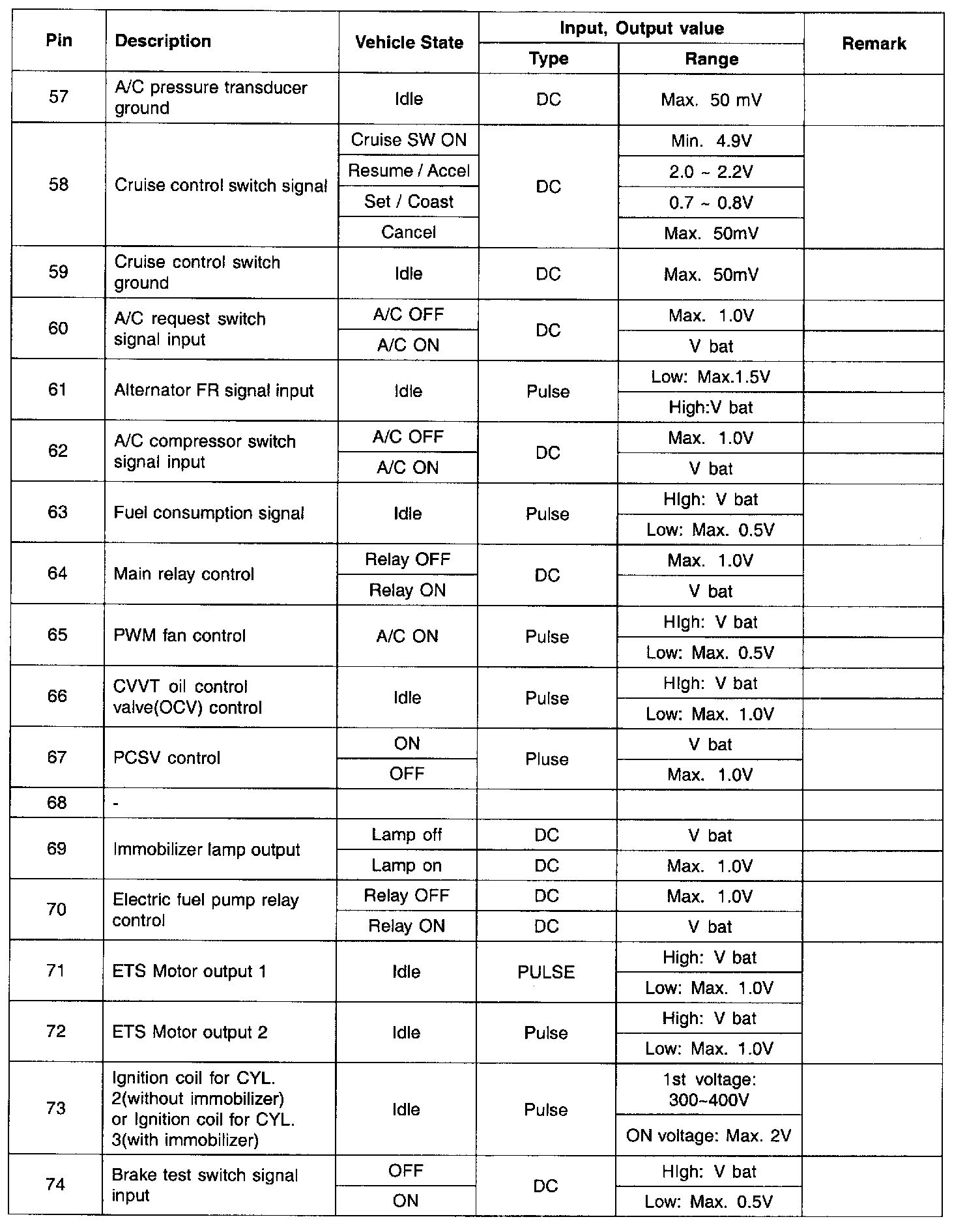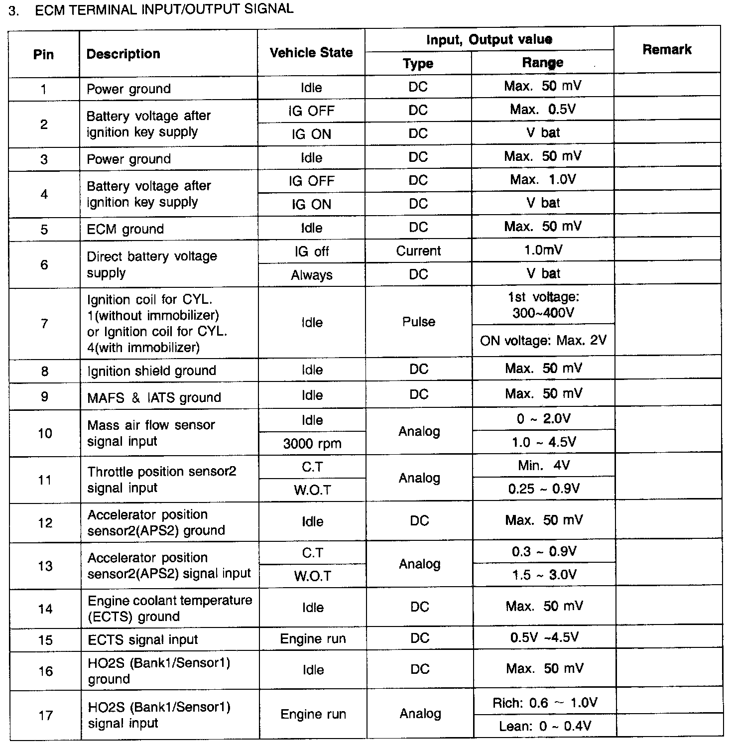 ECM Terminal Input/Output Signal Part 1: