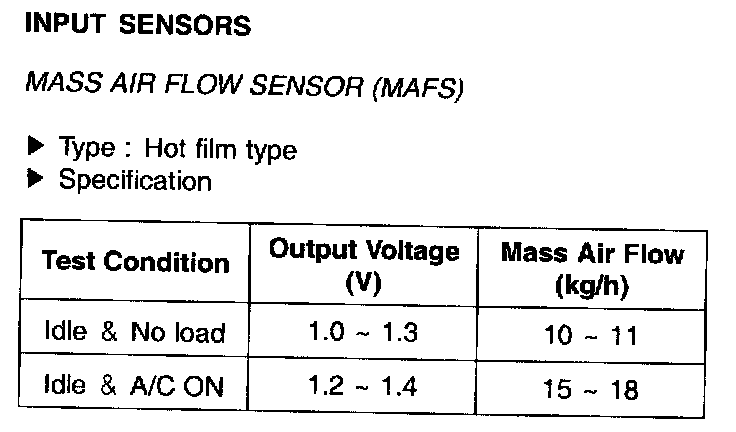 Mass Air Flow Sensor(MAFS) - Specification: