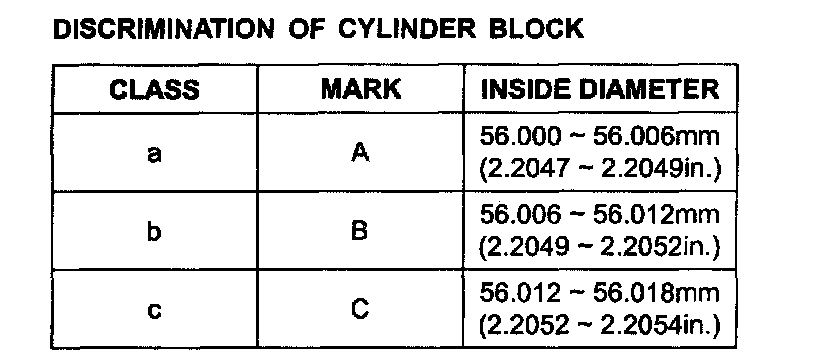 Cylinder bore 88.00 - 88.03 mm (3.4645 - 3.4657 inch)