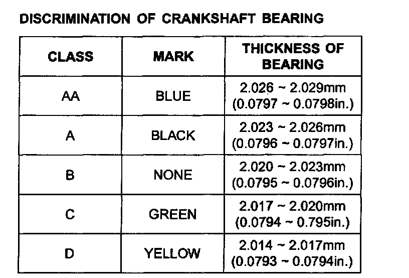 Crankshaft Bearing Codes