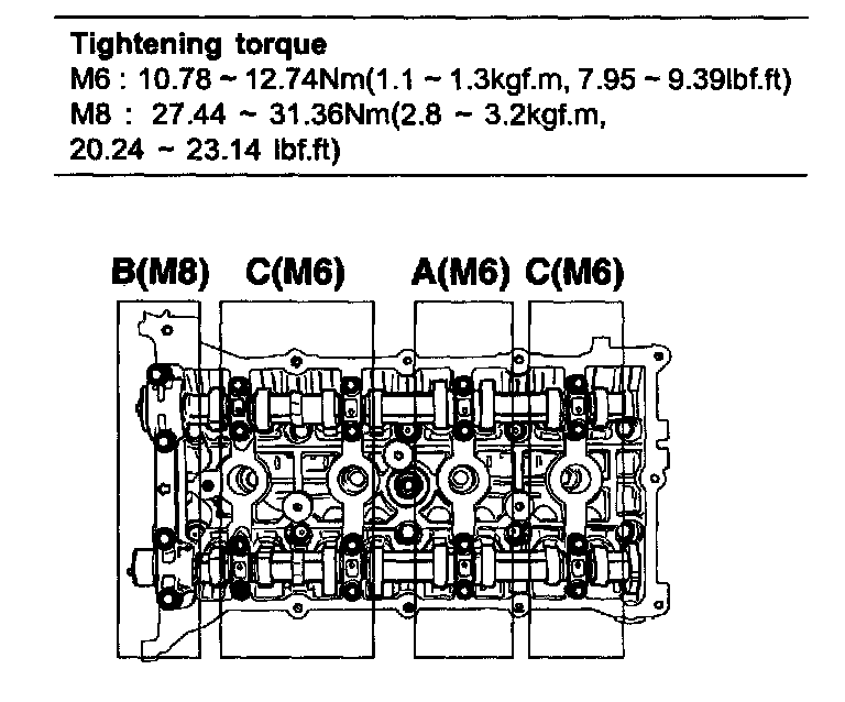 Camshaft & CVVT sprocket bolts 53.9-63.7 Nm (5.5-6.5 kgf.m, 39.7-47.0 ft. lbs.)