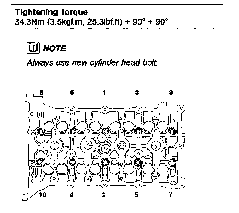 First pass 34.3 Nm (3.5 kgf.m, 25.3 ft. lbs.)