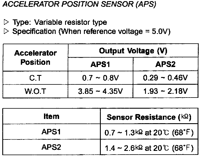 Accelerator Pedal Position Sensor: Specifications