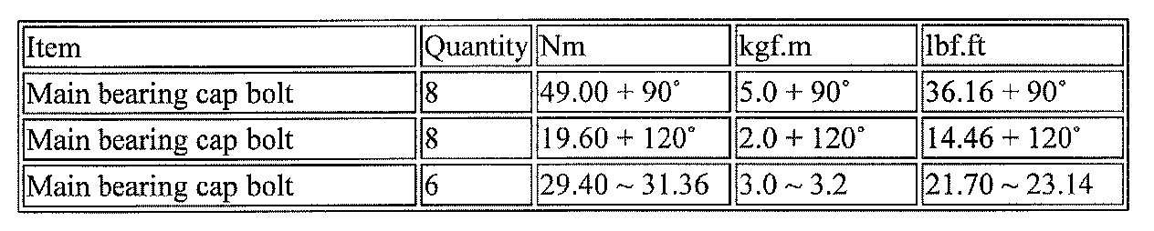 ALLDATA Editor Note: There are 3 different torque specifications given here, with little additional identifying information, please refer back to the image that shows the main bearing cap Engine Block Disassembly