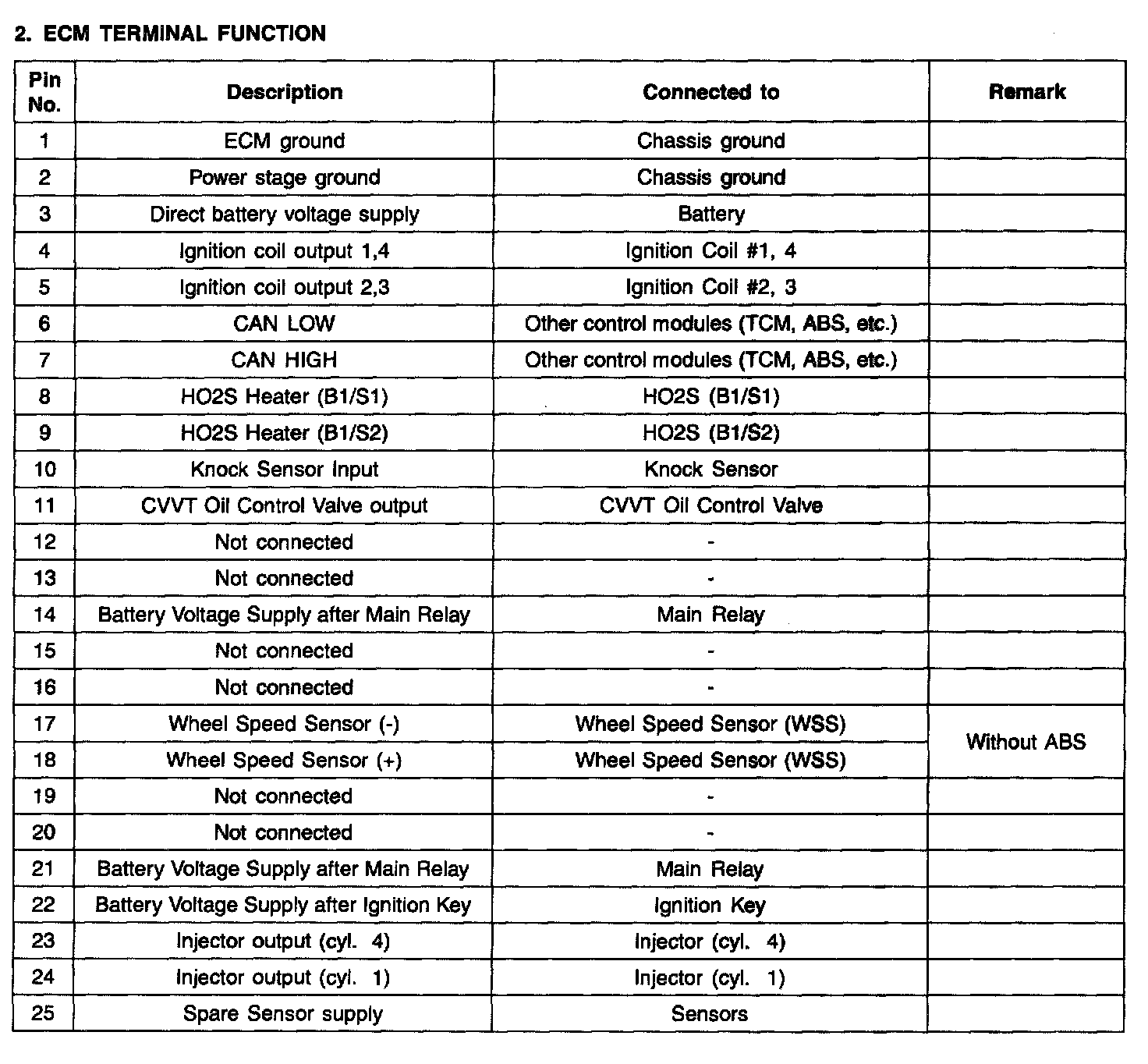 ECM Terminal Input/Output Signal Part 2: