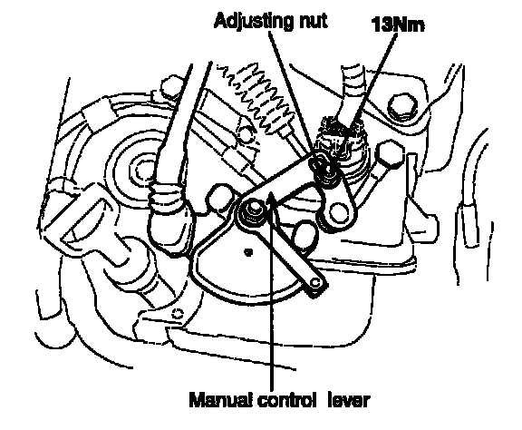 2. Loosen the control cable to the manual control lever coupling nut to free the cable and lever.