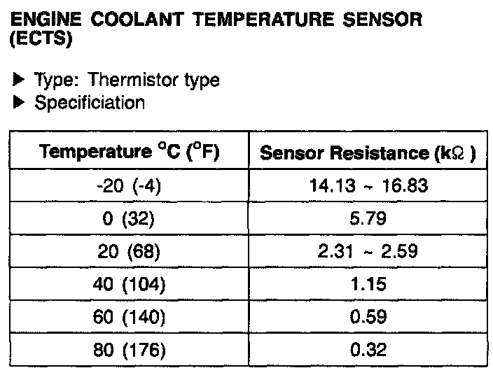 Engine Coolent Temperature Sensor (ECTS) - Specification: