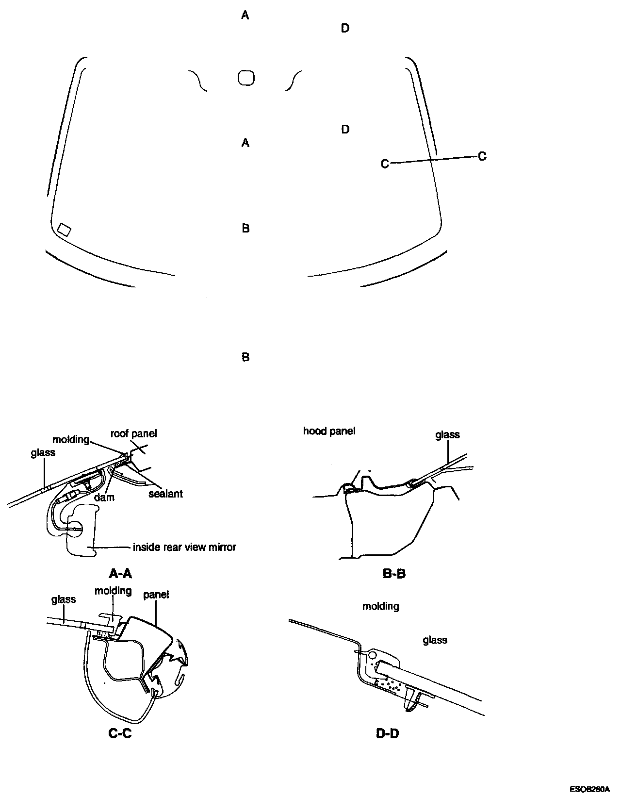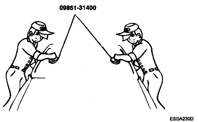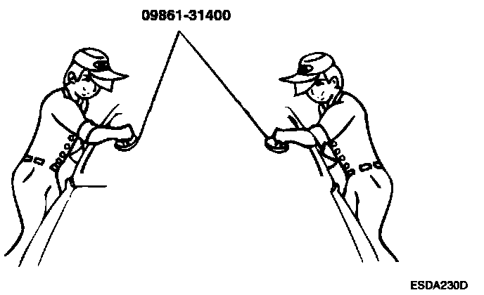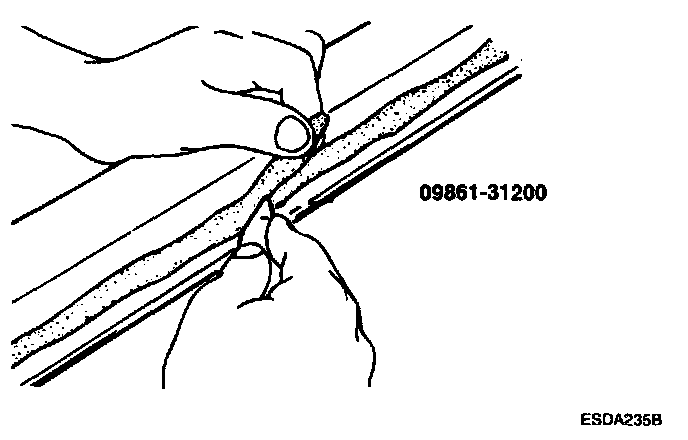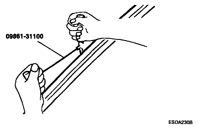 CAUTION: Be careful not to remove more adhesive than necessary, and also not to damage the paintwork on the body surface with the knife. If the paint work is damaged, repair the damaged area with touch-up paint.