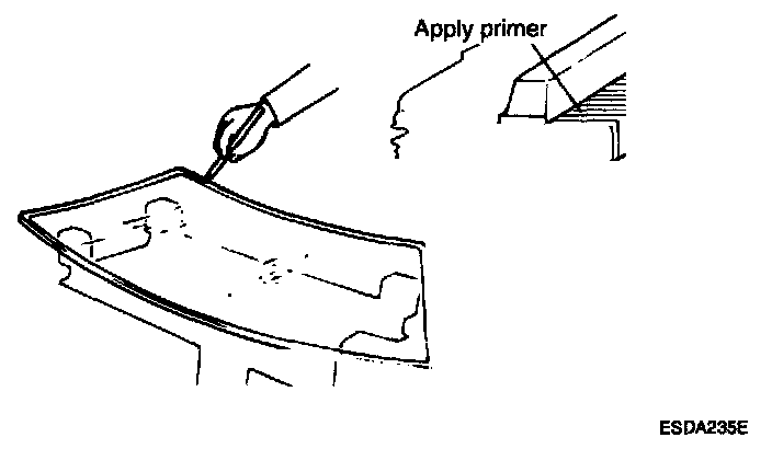 10. Apply a light coat of body primer to the original sealant remaining around the window opening flange. The glass should be installed within 5 minutes after you apply the primer.