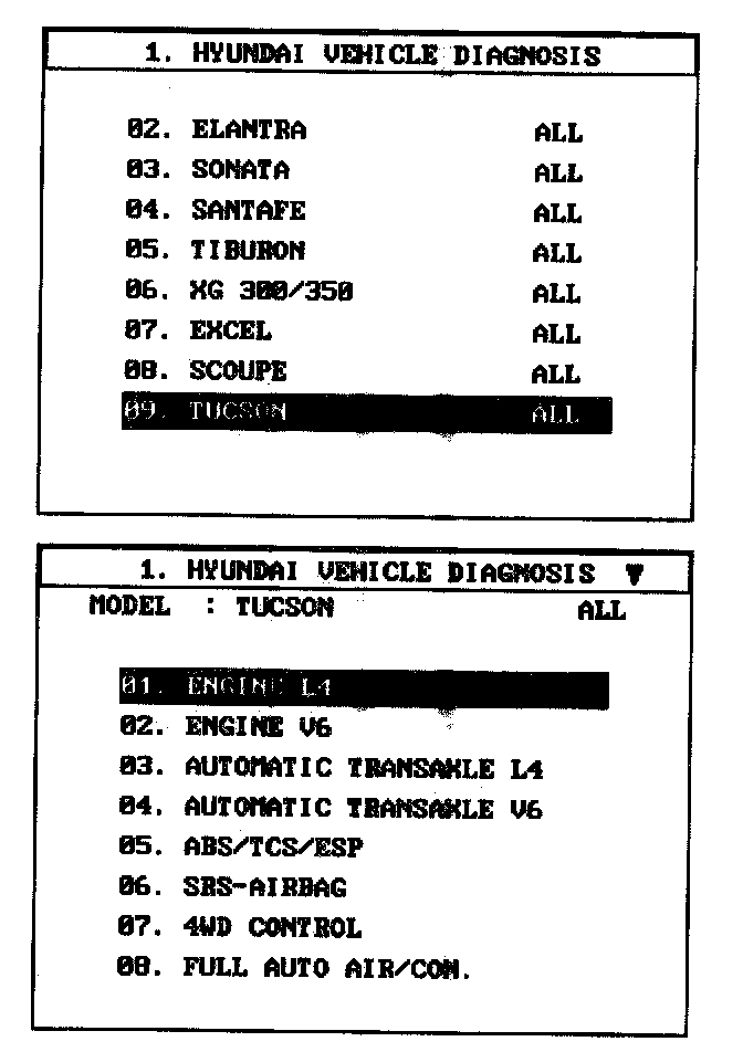 1. Select "Vehicle" and "Engine" (For example, TUCSON 2.0L L4).