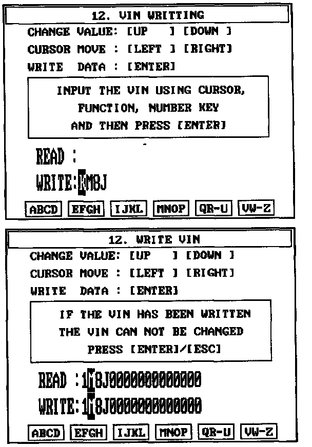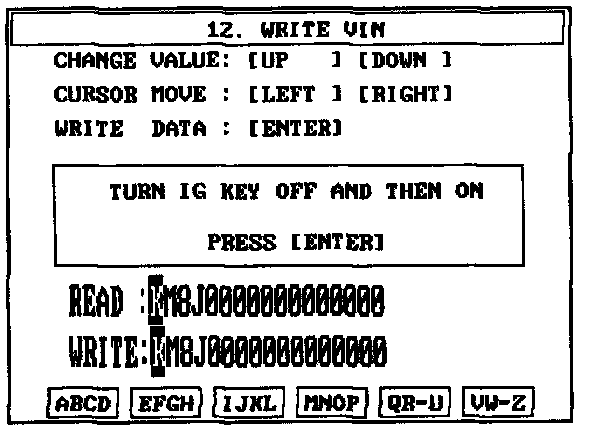4. Write the VIN with cursor, function and number keys.