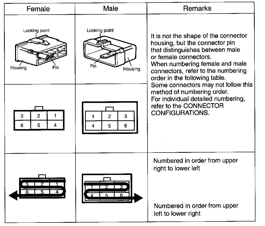 - It shows the front of the connector on the harness side when not to the harness connector. The terminal number on each connector can be obtained by following the pattern used in 05 connector view and numbering order. Unused terminals are marked with an asterisk (*).