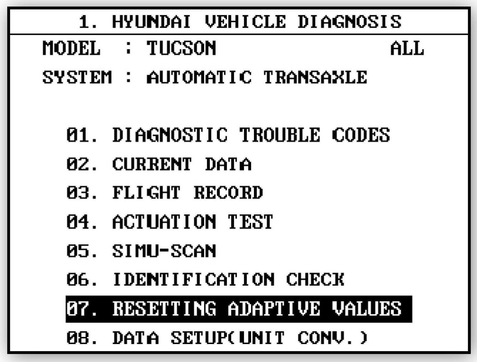 Home >> Hyundai >> 2007 >> Tiburon V6-2.7L >> Repair and Diagnosis >> Powertrain Management >> Relays and Modules - Powertrain Management >> Relays and Modules - Computers and Control Systems >> Engine Control Module >> Technical Service Bulletins >> All Technical Service Bulletins >> A/T Controls - PCM/TCM Reset/Relearn Adaptive Values