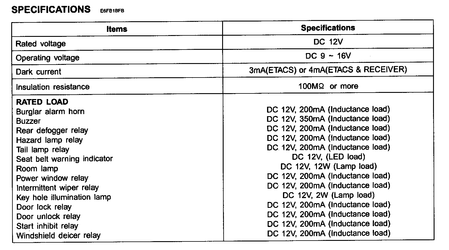 ETACS - Specifications: