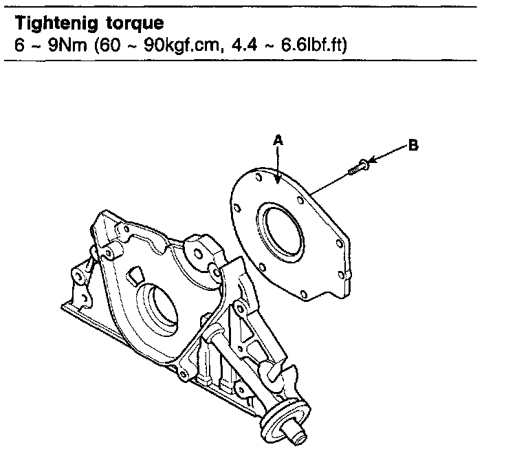 Install the oil pump cover (A) to front case with the 7 screws (B).