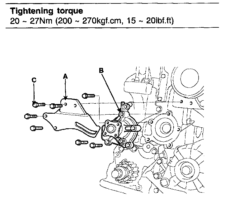 Tightening torque 20 - 27 Nm (200 - 270 kgf-cm, 15 - 20 ft. lbs.)