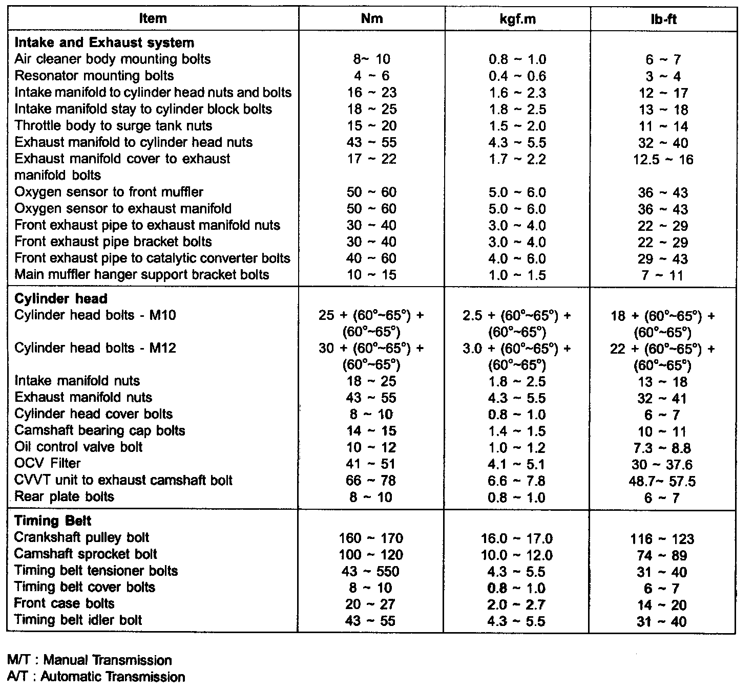 Home >> Hyundai >> 2007 >> Tucson AWD L4-2.0L >> Repair and Diagnosis >> Specifications >> Mechanical Specifications >> Engine >> System Specifications >> Tightening Torque