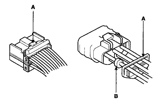 8. Before connecting connectors, make sure the terminals (A) are in place and not bent.