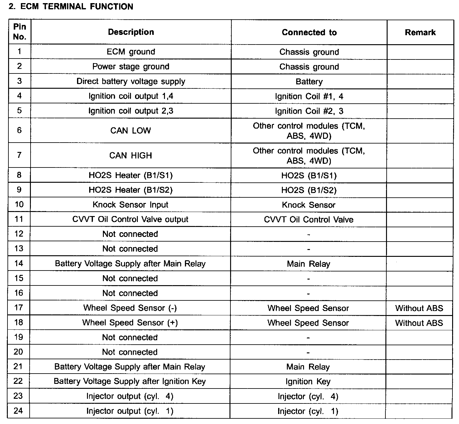 Engine Control Module (ECM) - ECM Terminal Function (Part 1):