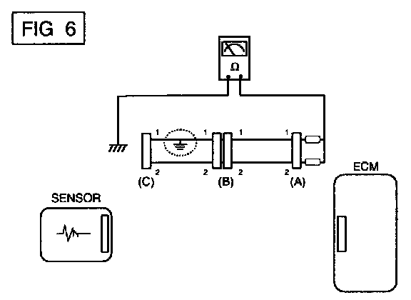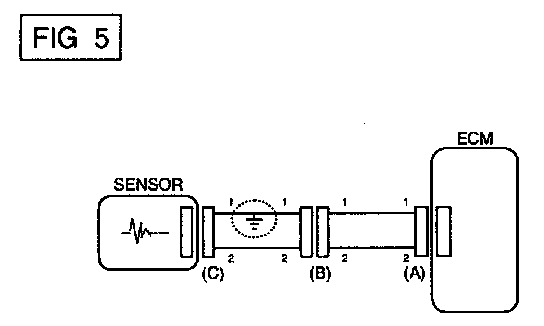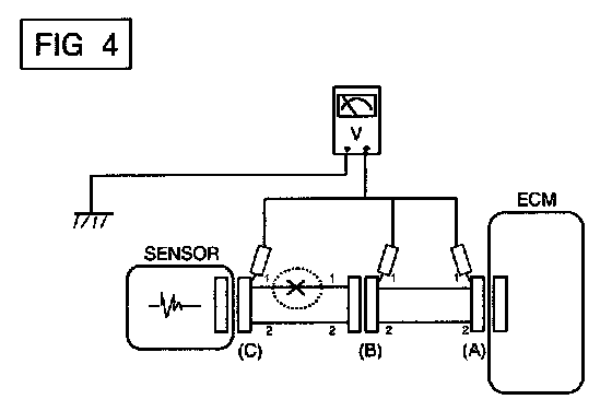 a. With each connector still connected, measure the voltage between the chassis ground and terminal 1 of each connectors (A), (B) and (C) as shown in [FIG. 4].
