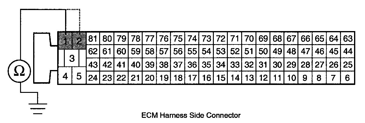2. TEST ECM CONNECTOR: Disconnect the ECM connector and visually check the ground terminals on ECM side and harness side for bent pins or poor contact pressure. If problem is found, repair it.