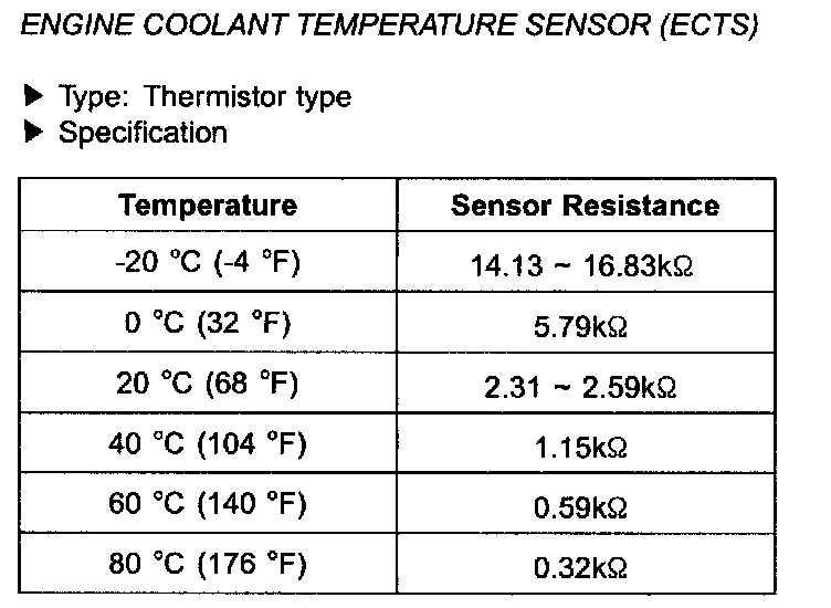 Engine Coolant Temperature Sensor (ECTS) - Specifications: