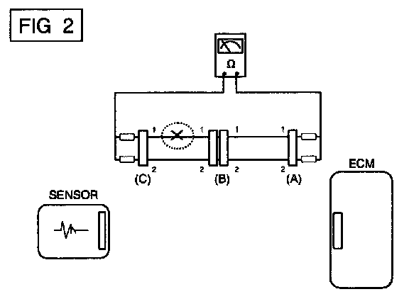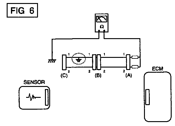 a. Disconnect connectors (A), (C) and measure for resistance between connector (A) and Chassis Ground as shown in (FIG. 6].