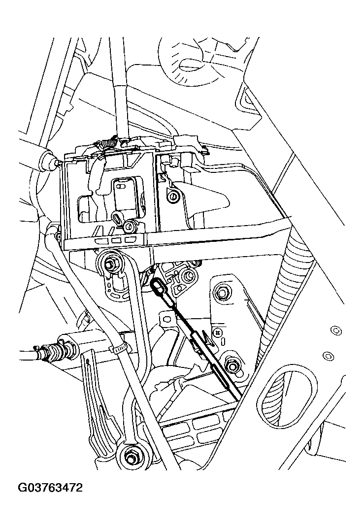 - Install shift lock cable in position. In this case, shift lock cable must be fixed to brake pedal in position.