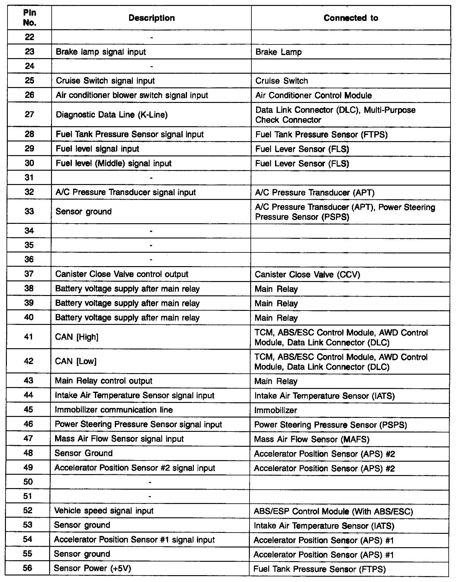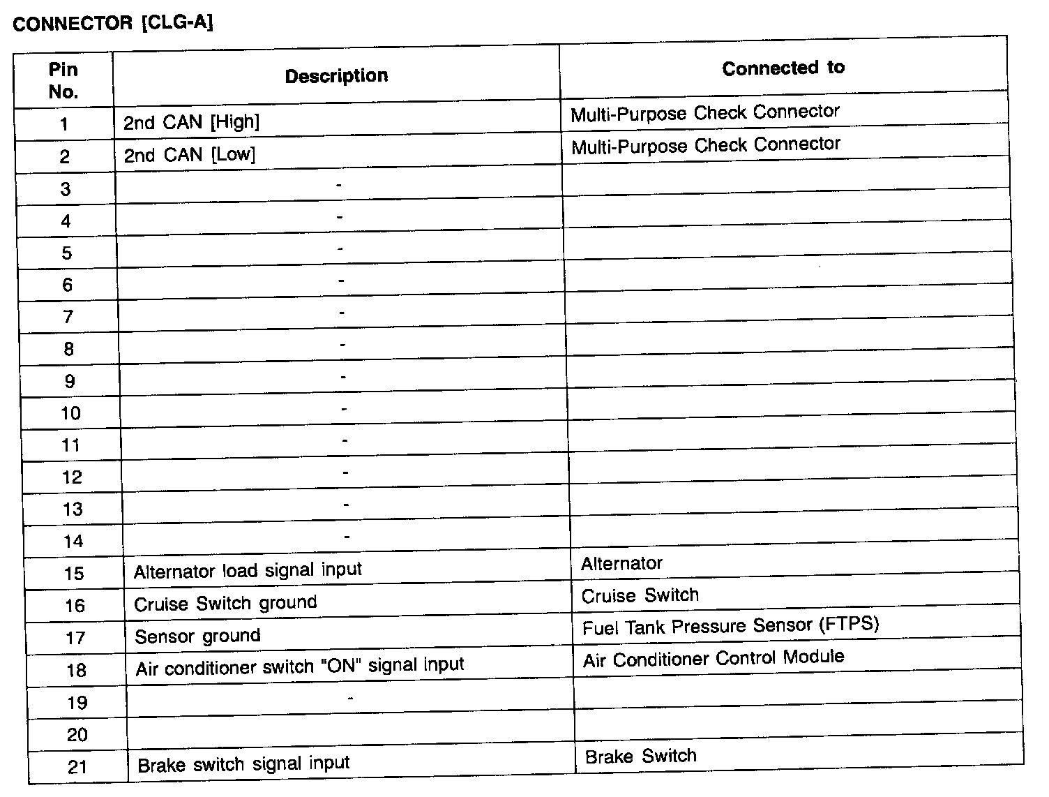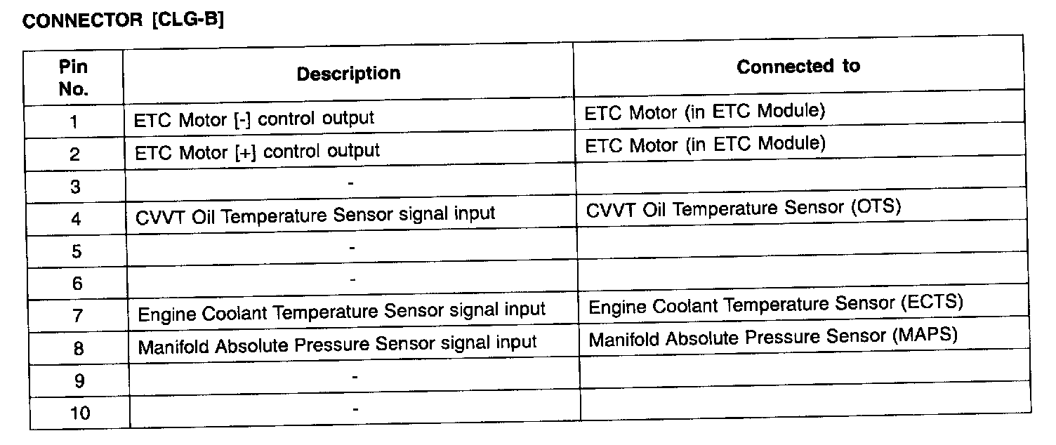 ECM Terminal Function - Connector (CLG-A) Part 2: