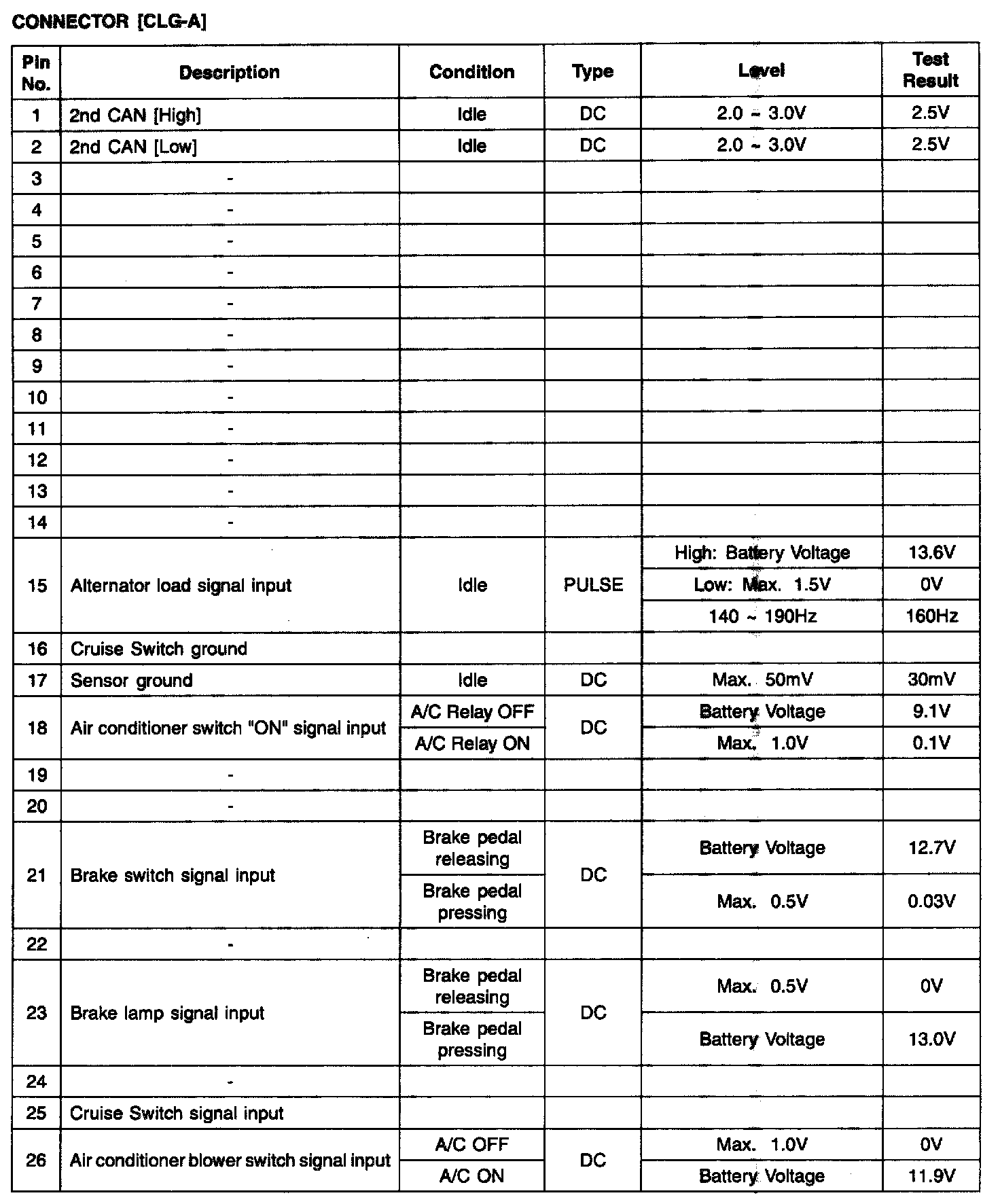ECM Terminal Input/Output Signal - Connector (CLG-A) Part 2: