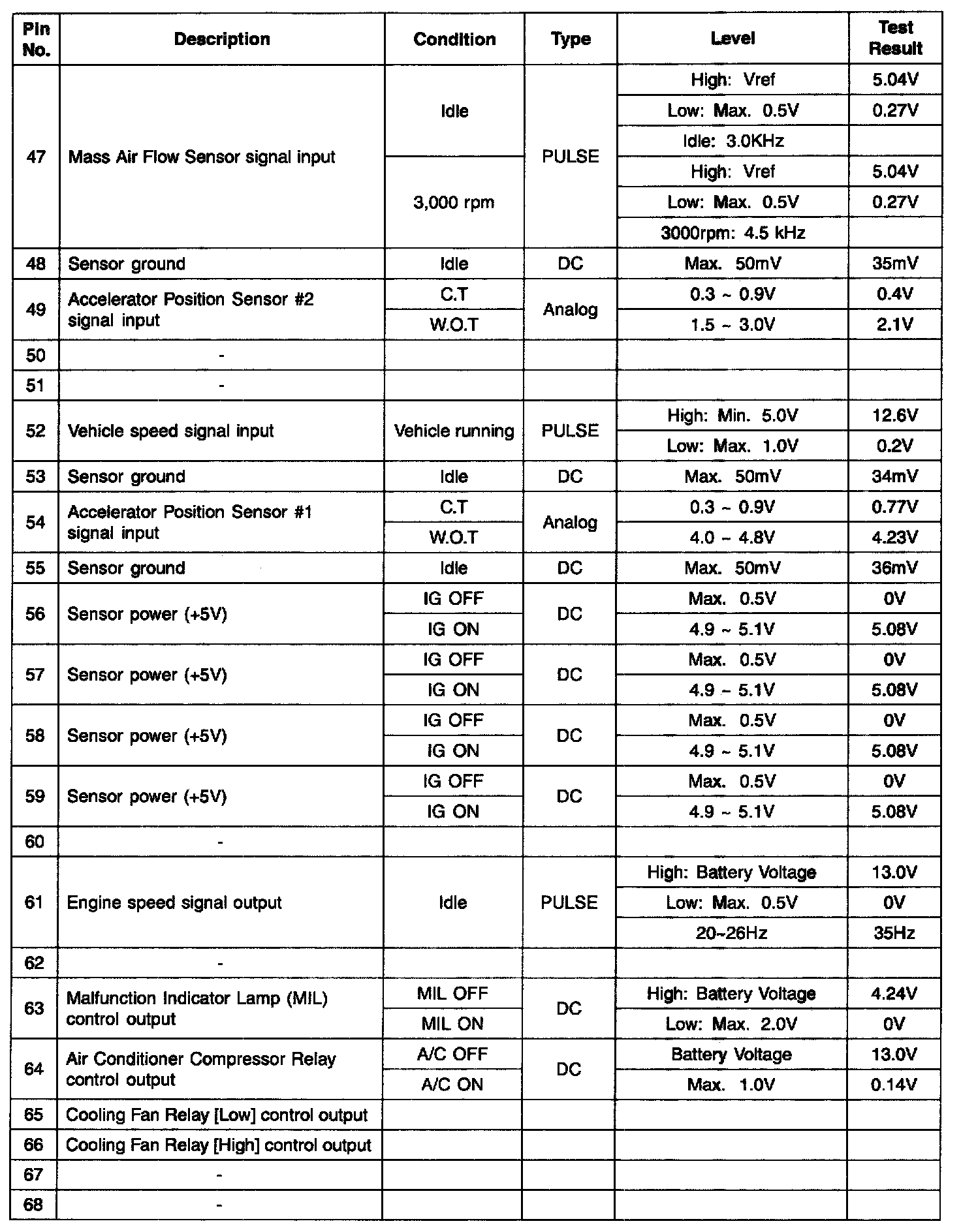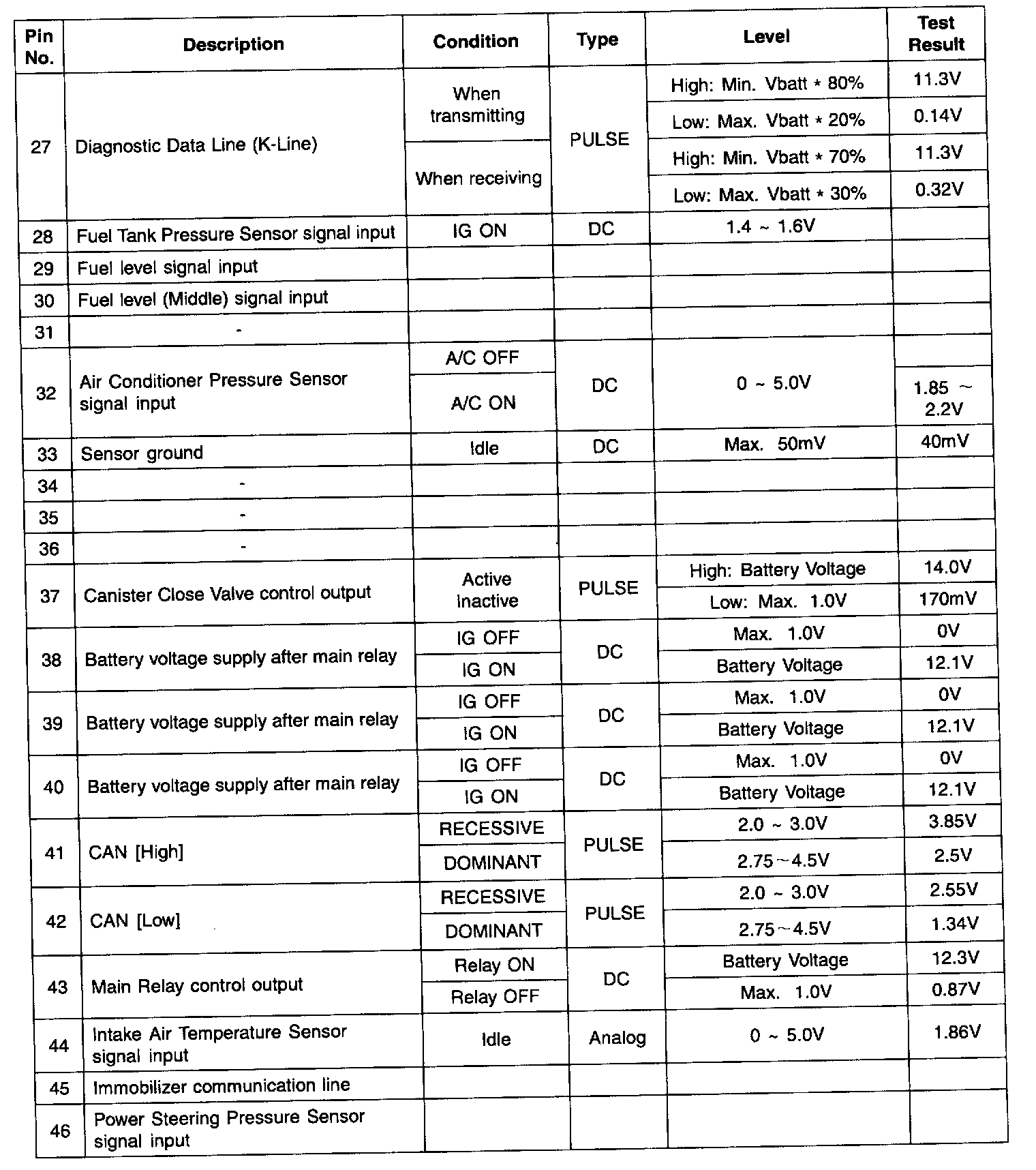 ECM TERMINAL INPUT/OUTPUT SIGNAL - CONNECTOR [CLG-A]