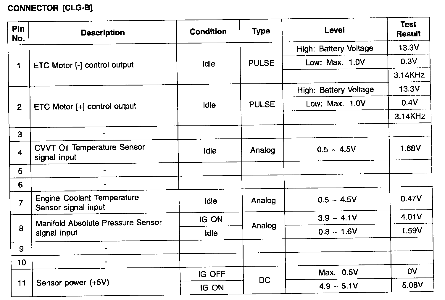 ECM Terminal Input/Output Signal - Connector (CLG-B) Part 4: