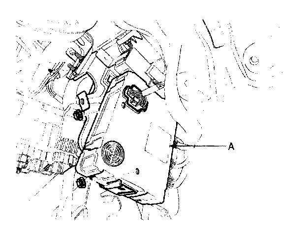 3. Remove the body control module (A) and after loosening 2 nuts and disconnecting connector.