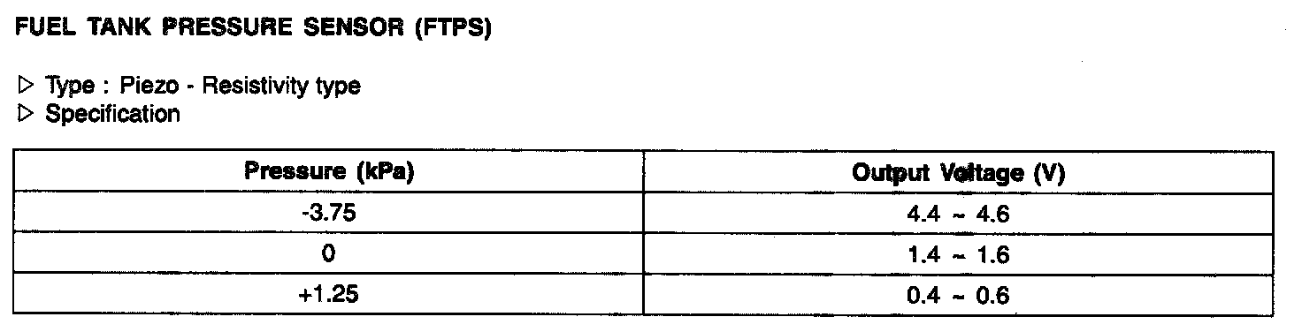 Fuel Tank Pressure Sensor (FTPS) - Specification: