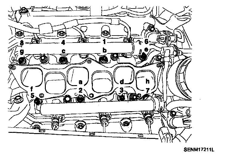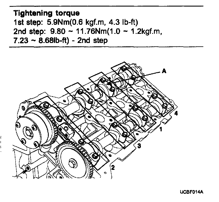 Cylinder head bolts1st step 37.3 - 41.2 Nm (3.8-4.2 kgf.m, 27.5-30.4 lb-ft)