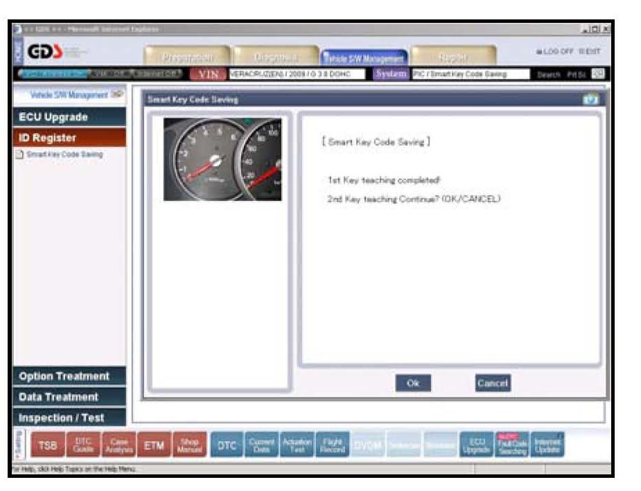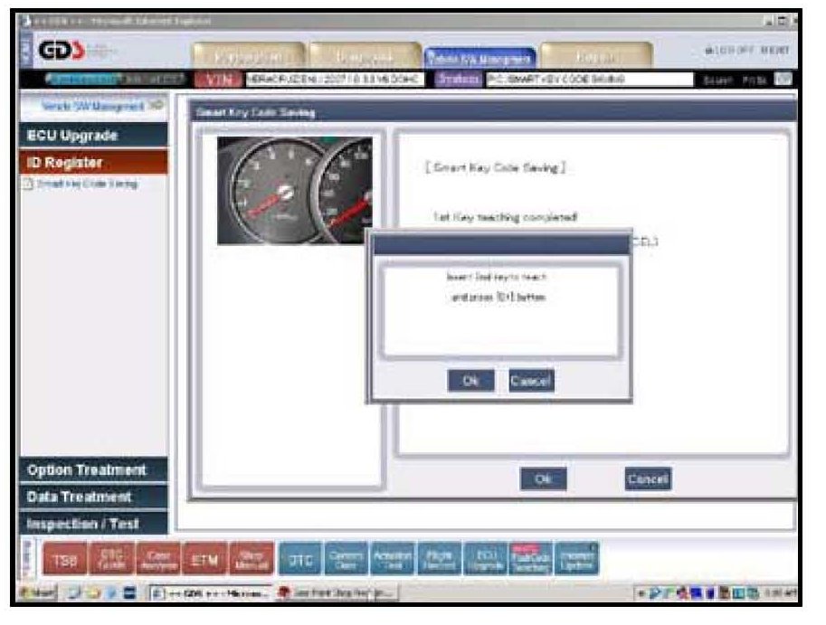 4. Insert the 1st Smart Key into the ignition switch (MSL) and press OK.