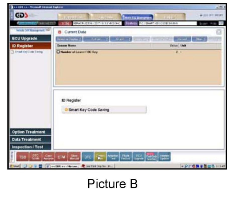 9. A screen showing that the Smart Key Teaching has been completed will open (Picture A) and it will show how many Smart Keys have been taught. This information can also be found in the Current Data Screen (Picture B).