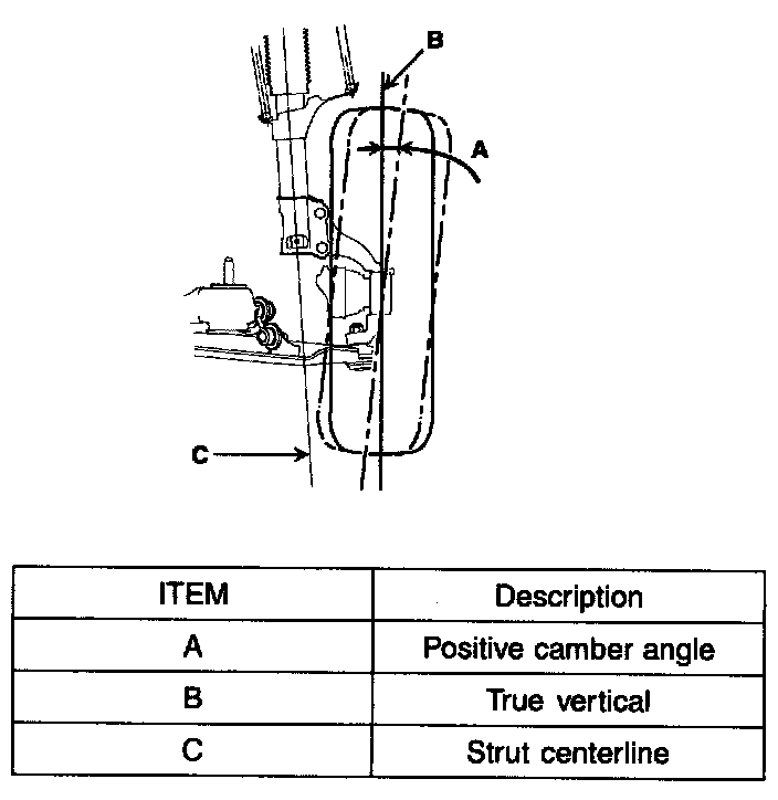 ^ If the camber and caster are not within specifications, replace bent or damaged parts.