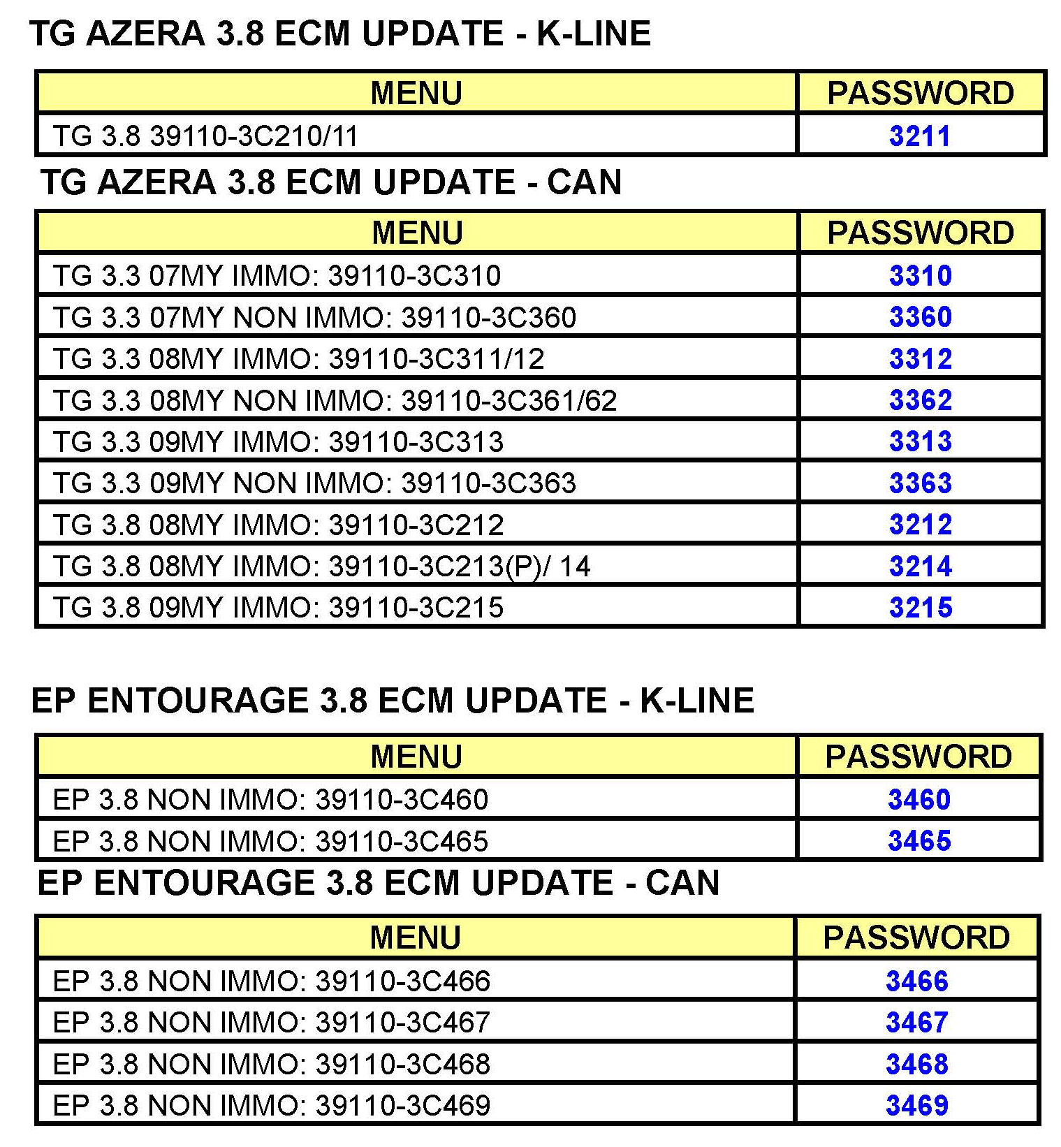 10. For EN Veracruz after update is completed, perform the VIN writing procedure or immobilizer key teaching procedure on the affected vehicles where it is referenced in the "ECM ROM ID INFORMATION "table earlier in this TSB.