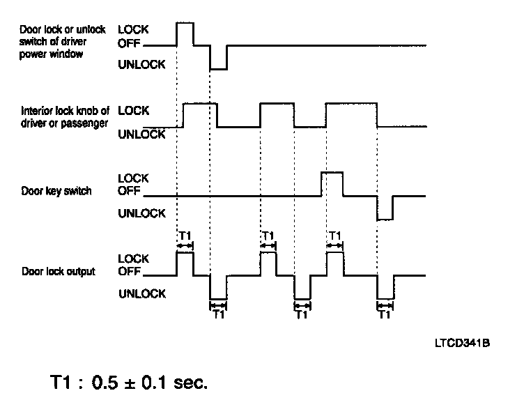 5. If the driver side or passenger side door is locked within 0.5 second after driver side or passenger side door is closed, it outputs unlock command for 1 second.