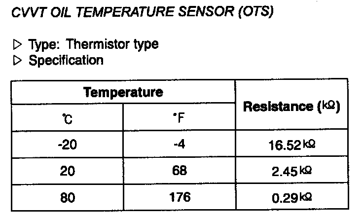 CVVT Oil Temperature Sensor (OTS) - Specification: